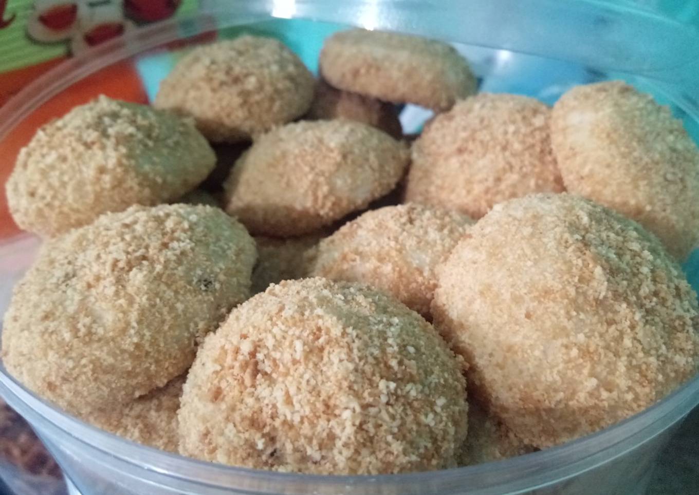 - Balurkan kue selagi panas dengan biskuit regal. Jika sudah dingin, bisa langsung di tata dalam toples.