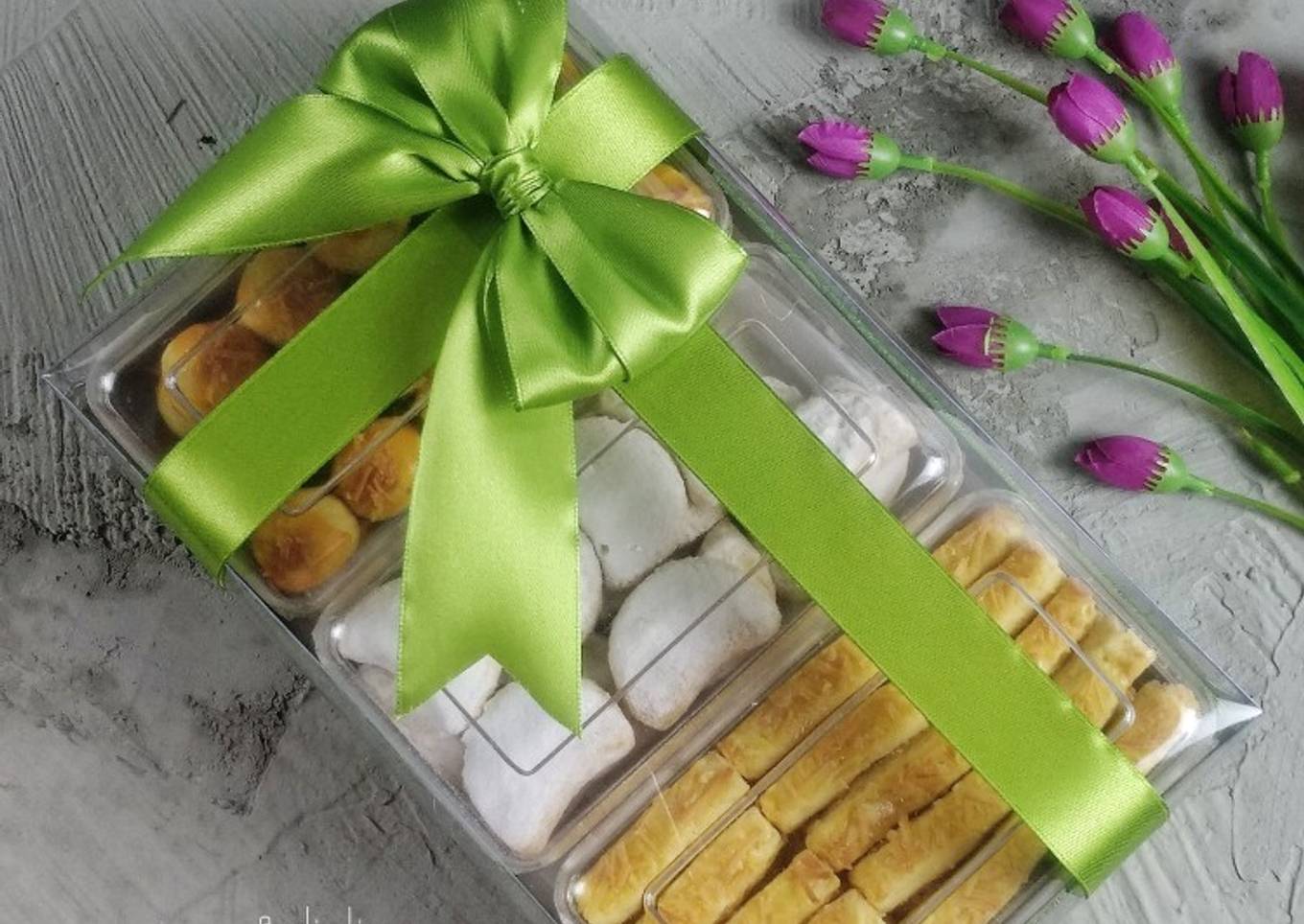 Banyak hal yang sedikit banyak berpengaruh terhadap kualitas rasa dari Hampers kue kering, pertama dari jenis bahan, selanjutnya pemilihan bahan segar, hingga cara mengolah dan menyajikannya. Tidak usah pusing kalau ingin menyiapkan Hampers kue kering enak di rumah, karena asal sudah tahu triknya maka hidangan ini dapat jadi sajian istimewa. Berikutnya adalah gambar tentang Hampers kue kering yang bisa Anda jadikan wawasan.