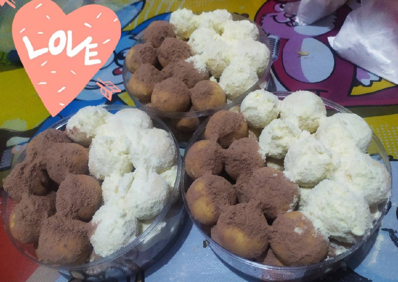 Setelah matang kue langsung aduk aduk ke susu bubuk selagi hangat biar menempel - Langsung masukan toples tunggu dingin langsung tutup deh