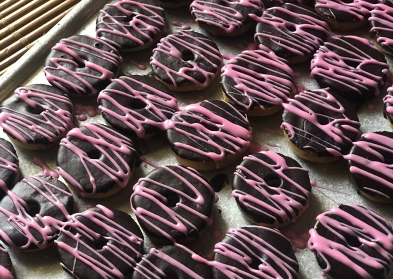 - Cairkan coklat batang. Celupkan kue satu per satu. Saya celupkan baguan bawah kuker ya, jdi ketutup imperfection nya. Hias bagian atas dengan coklat pink.
