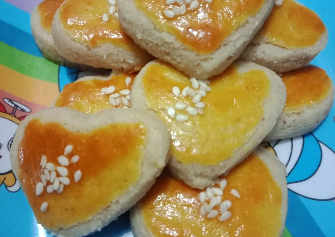 - Olesi adonan dengan kuning telur, taburin wijen. Oven adonan kurang lebih 20 menit.. Kue kacang siap disajikan
