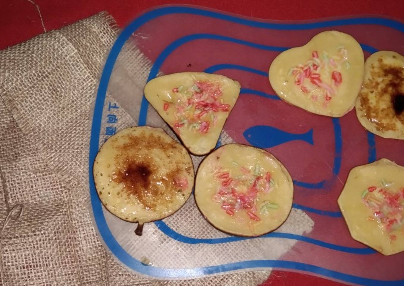 - Siapkan cetakan olesi tipis margarin, tuang adonan setengah cetakan tutup masak dengan api sangat kecil