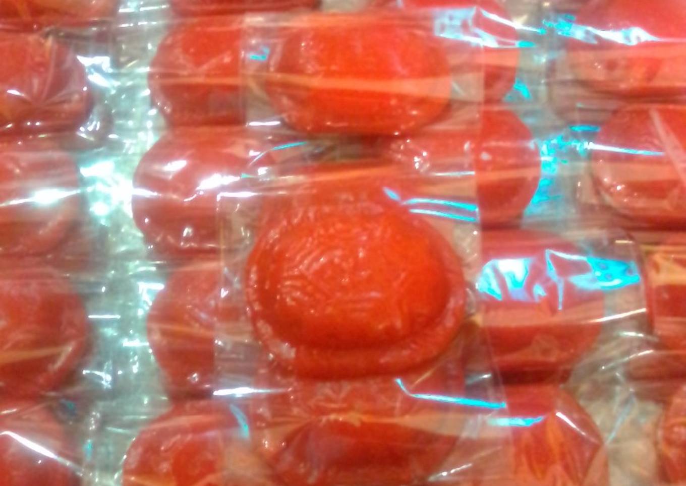 - Tambahkan pewarna merah cabe.lalu timbang 40-41gr.